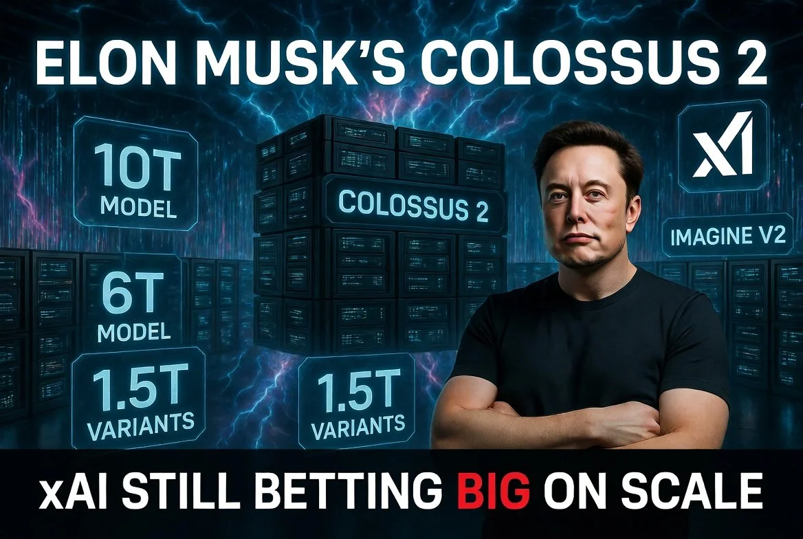 The headline detail was simple: Colossus 2 is training seven models at once, including Imagine V2, two 1T variants, two 1.5T variants, a 6T model, and a 10T model. Musk ended the post with a line that matters just as much as the model list: “Some catching up to do.” That wording makes the post more than a flex. It reads like an admission that xAI still sees itself as behind the very top tier and believes the answer is aggressive scale.