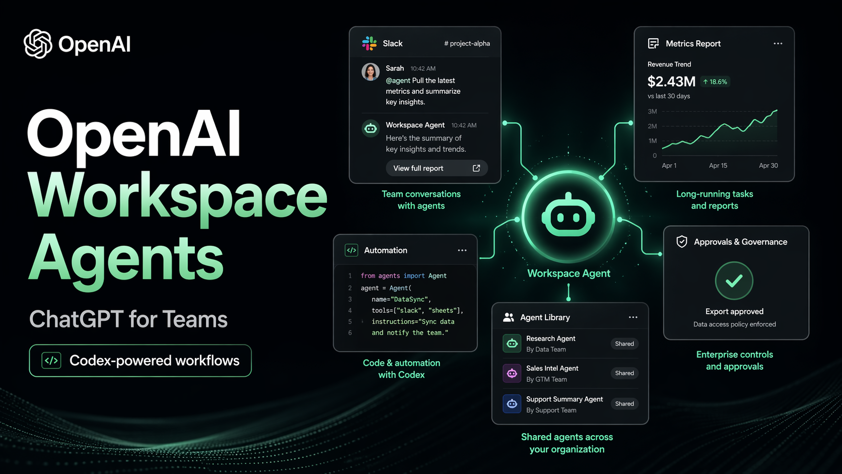 Workspace agents are launching in research preview for ChatGPT Business, Enterprise, Edu, and Teachers plans. OpenAI says the feature will be free until May 6, 2026, and will then move to credit-based pricing. For Enterprise and Edu customers, admins can enable agents with role-based controls.